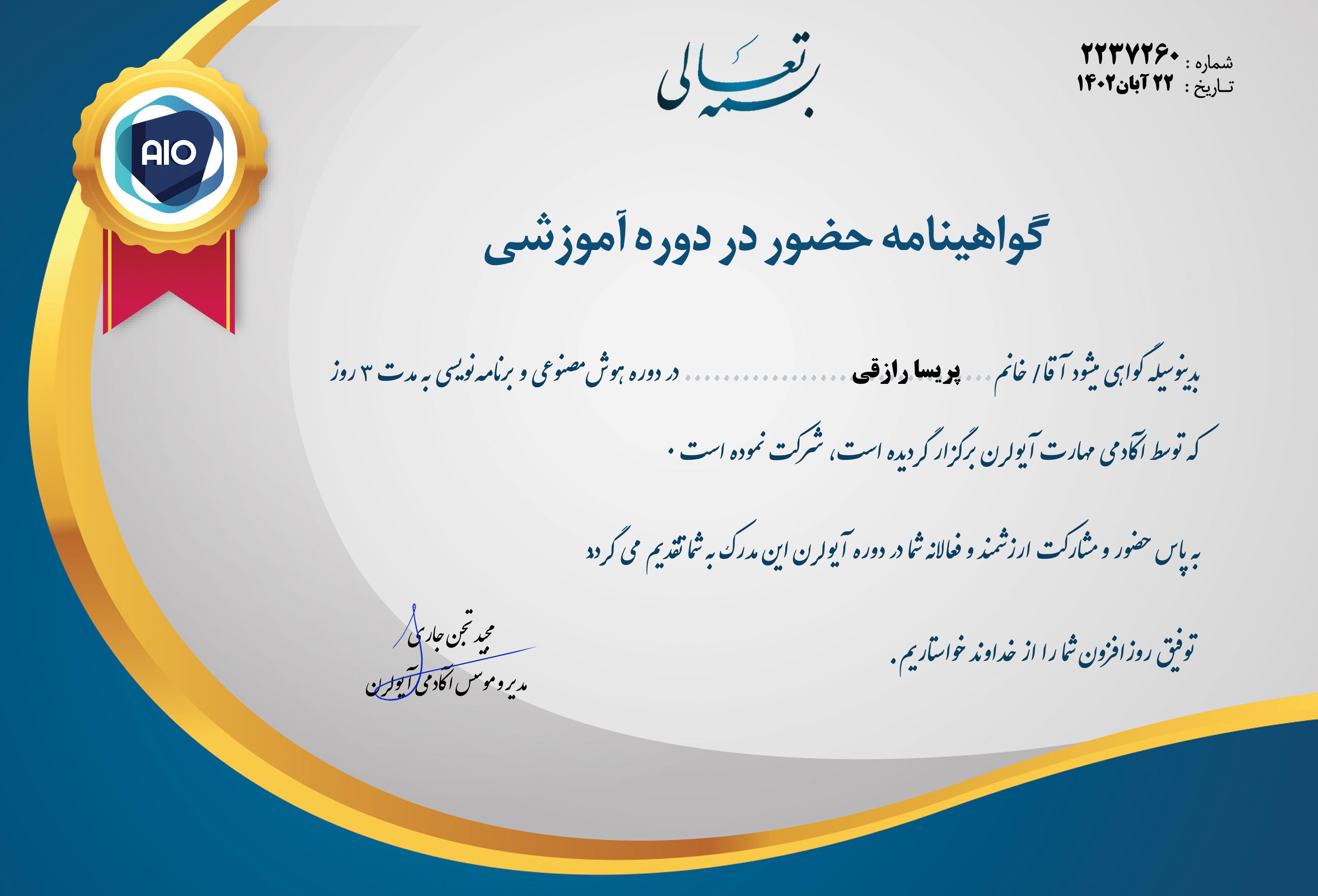 - مدرک: نرم افزار -دانشجوی آیولرن لیسانس