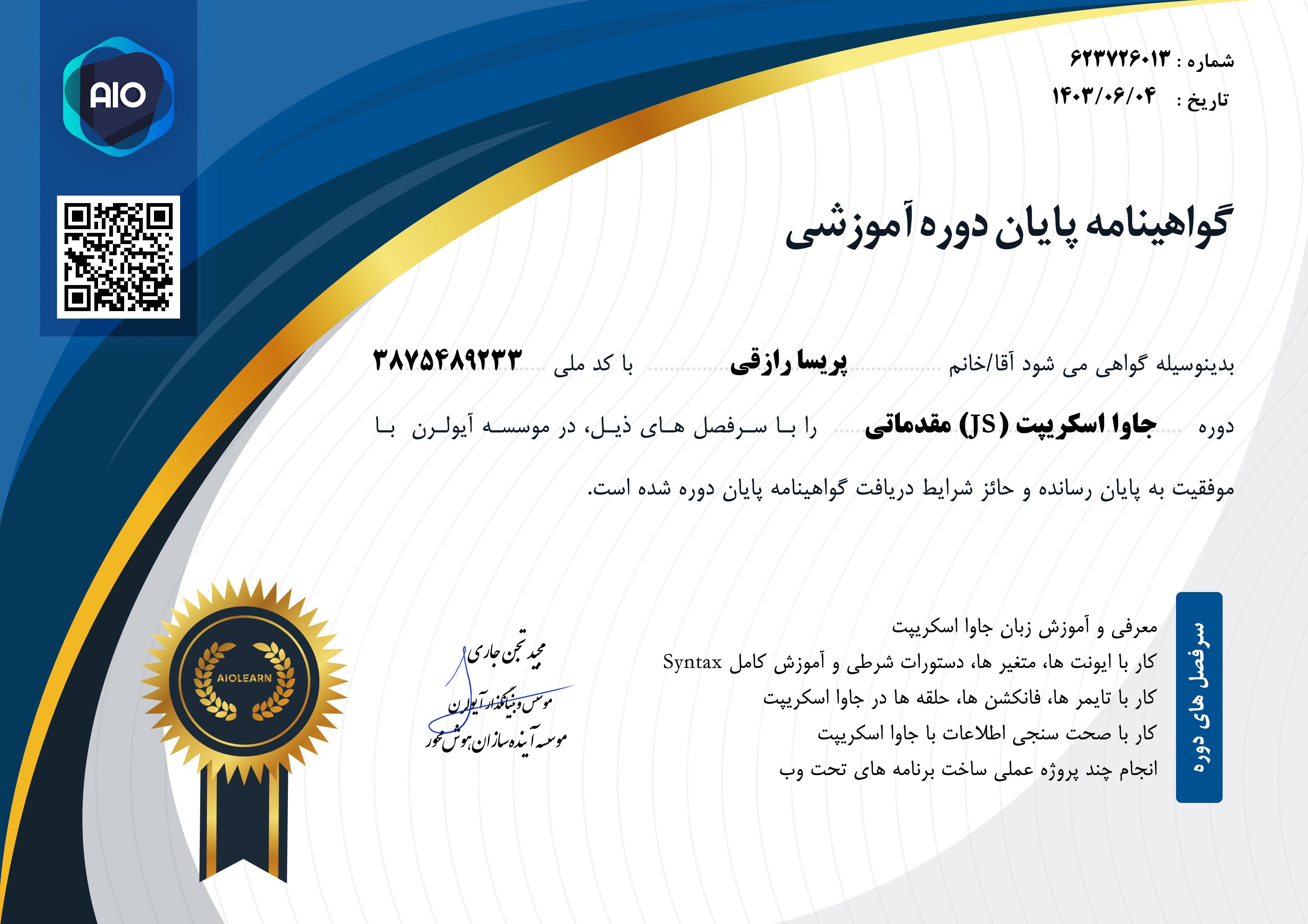 مدرک جاوا اسکریپت مقدماتی و پیشرفته